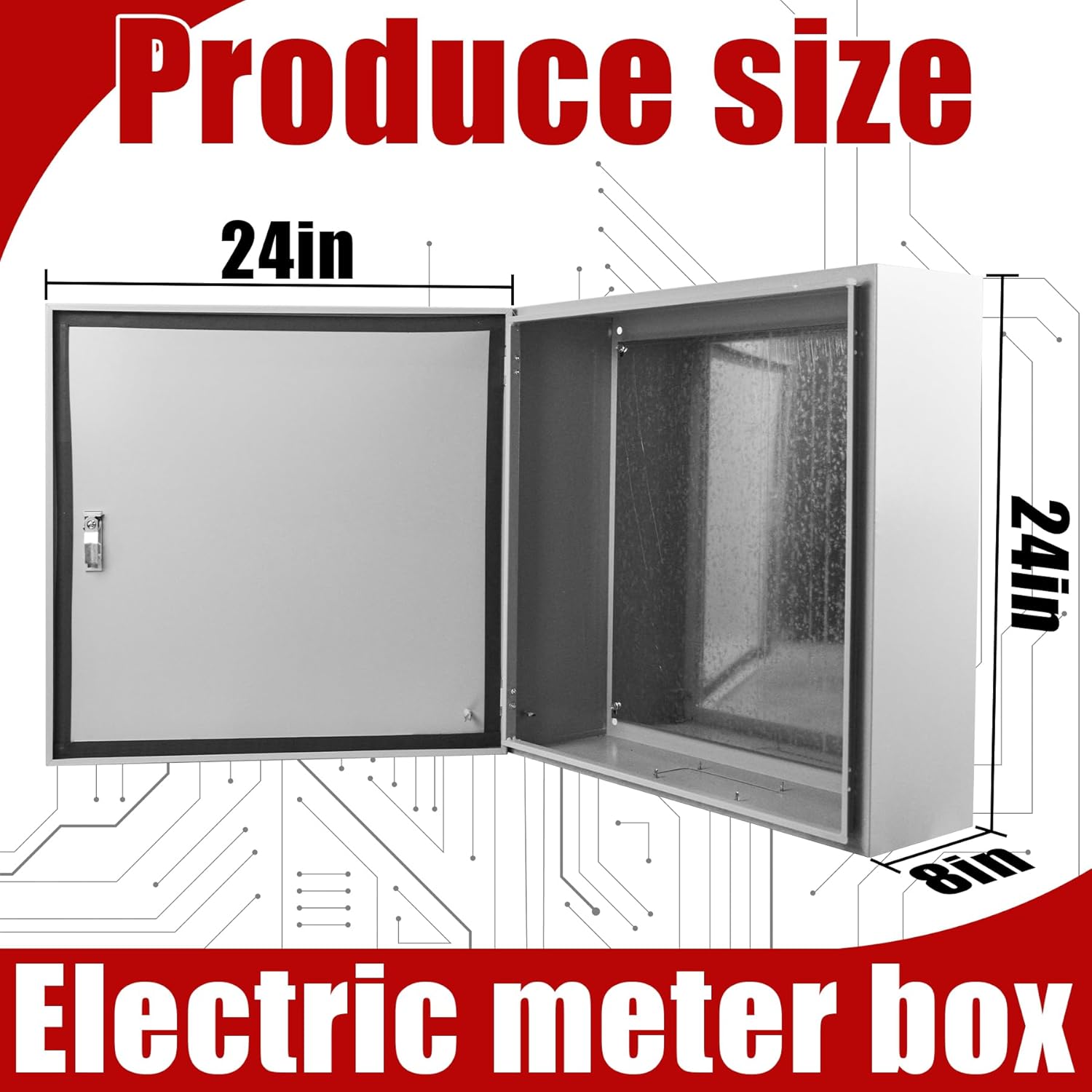 Electrical Box 24 x 24 x 8 Inch Indoor Outdoor Electrical Enclosure Box Steel Junction Box Wall Mounted Universal Electrical Project Box with Safety Locks and Mounting PlatesSpecifications:Material: Cold-Rolled SteelColor: SilverIP Rating: IP66Mounting Type: Wall-MountConnection Type: HingedMounting Plate: Detachable Galvanized Back PlateDimensions(H x W x D): 23.5" H x 23.5" W x 7.9" D (600 x 600 x 200mm)Application: Indoor/OutdoorFsehuye electrical enclosure box If you are looking for a professional electrical box to protect your electrical system from the effect of external factors,Fsehuye electrical enclosure box would be a great choice.Please note before purchasing: This electrical box has certain moisture and dust resistance, but cannot be waterproof and cannot be used on accessible or exposed rainy days